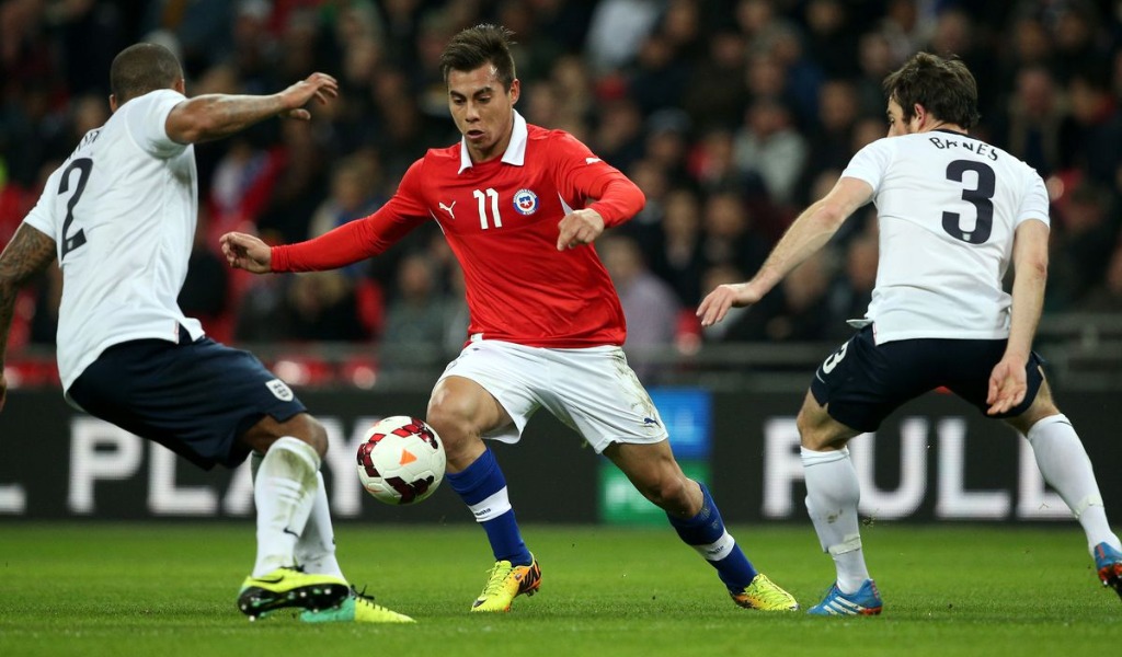 England were on top in the first five minutes or so, but that was to be the only time that they were. Chile broke, and from Eugenio Mena’s cross, Sánchez headed past Forster for a seventh minute opener. The goal was Leighton Baines’ fault. Frank Lampard, the captain on the night who was ‘winning’ his 103rd cap, then struck a brilliant free-kick only to see it acrobatically saved by the Real Sociedad goalkeeper Claudio Bravo. England kept trying and Adam Lallana came close, only to see his shot deflected wide for a corner. Jean Beausejour came close for Chile a few times as well, but he once overran and once had his shot parried by Forster. The half ended with Chile ahead.