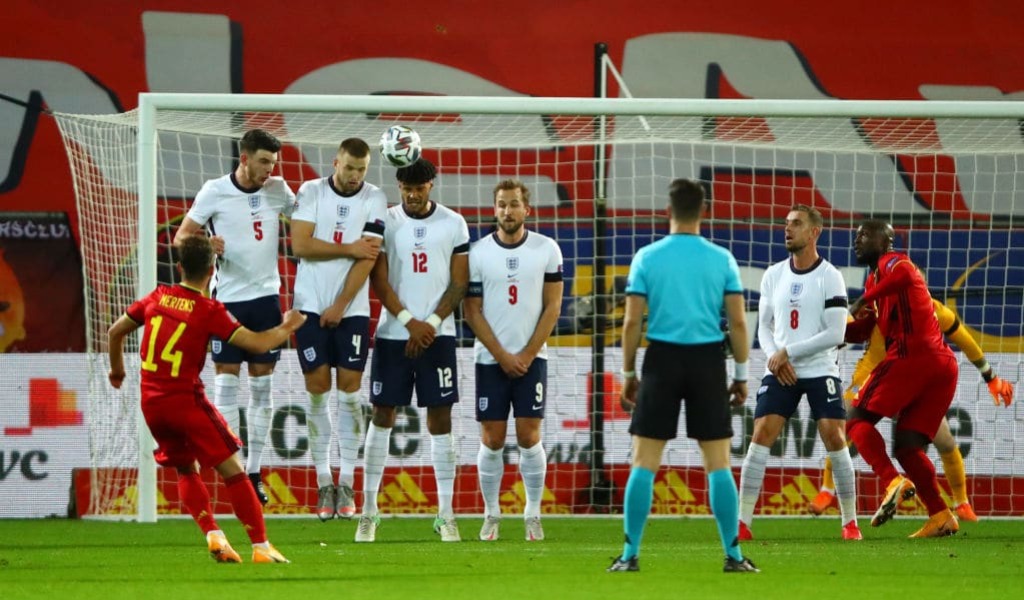 When England had finished not putting their chances to bed, Belgium took an almighty step to putting the game to bed. Kevin de Bruyne leaned over a close-range free kick ominously, but when Dries Mertens — born in Leuven — stepped up casually to guide the ball home instead, Belgium’s embarrassment of riches in the attacking third had been underlined quite emphatically. As it happens, Declan Rice had actually won the ball in the exchange that ‘earned’ Belgium the free kick. A nod to elite-level referees everywhere that incorrect calls change football matches.